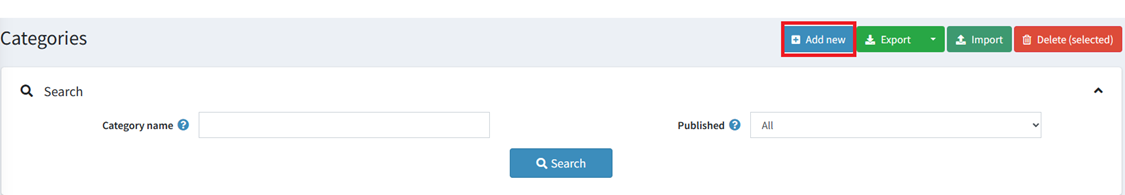 To enter Categories, select ‘Add New’.